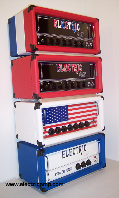 ELECTRIC AMP CUSTOM RED WHITE AND BLUE TROUBLE FREE HIGH OUTPUT BIG ROUND KNOB TUBE AMPS ! RETURN all rights reserved www.planetoftheamps.com