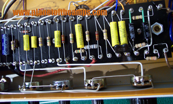 Tone comes from the output tranny and a simple straight to the "Point" hardwire design!